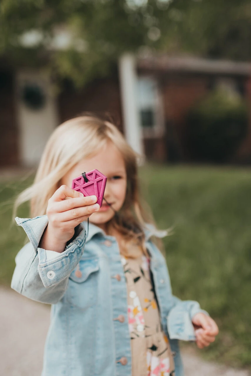De ARK Diamant kauwketting is een effectieve en visueel toegankelijke kauwtool voor kinderen en volwassenen met een kauwbehoefte. Deze hanger in diamantvorm biedt een veilig alternatief voor het kauwen op kleding, potloden of vingers en helpt bij het reguleren van spanning en prikkels. Door de bredere vorm is dit model bijzonder geschikt voor gebruikers die liever met de voortanden of premolaren kauwen. Hierdoor is het product veelzijdig inzetbaar binnen therapie, onderwijs en thuissituaties.