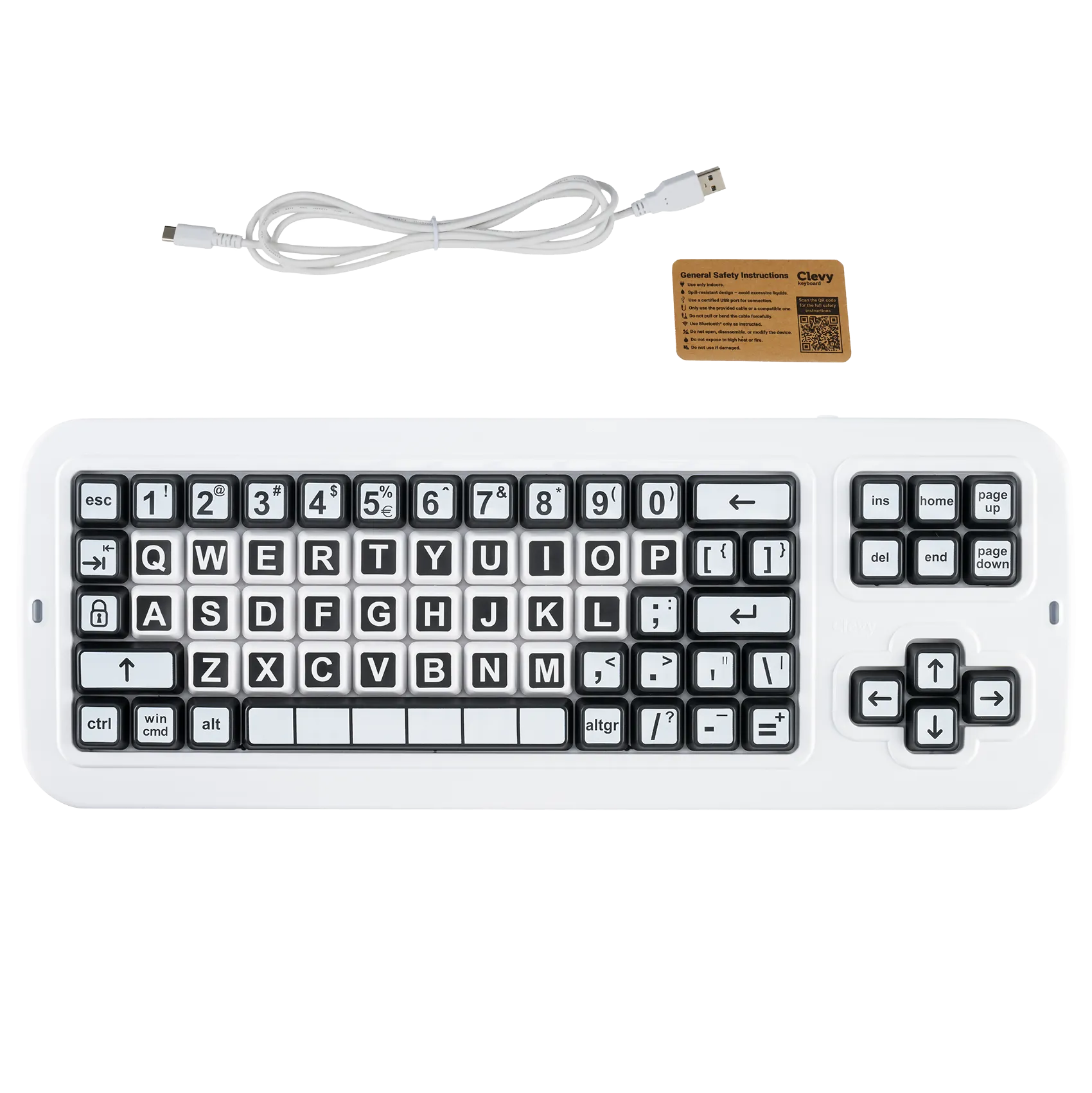 Clevy Contrast Toetsenbord Zwart-Wit – TRI-Mode Toegankelijk Toetsenbord