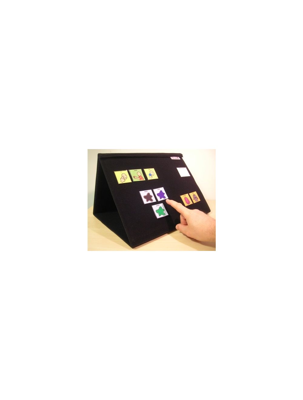 Ontdek de Taakbalk Driehoek Groot, een robuuste en stabiele oplossing voor interactieve leeractiviteiten, creatieve toepassingen en communicatieoefeningen. Het bord staat stevig op tafel, waardoor kinderen en volwassenen eenvoudig symbolen, zinnen of stappenplannen kunnen plaatsen en verplaatsen. Dankzij het klittenvilt aan alle zijden kunnen kaartjes of pictogrammen veilig bevestigd worden en snel worden gewisseld, waardoor het bord multifunctioneel en flexibel inzetbaar is.