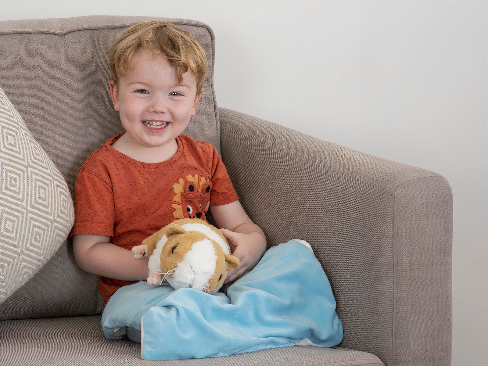 Het vriendelijke cavia-ontwerp maakt het hulpmiddel toegankelijk en vertrouwd. Veel kinderen ervaren een dierenvormige knuffel als veilig en geruststellend. Daardoor voelt het product minder als een hulpmiddel en meer als een zachte knuffel die ondersteuning biedt tijdens dagelijkse activiteiten in school, therapie of thuis.