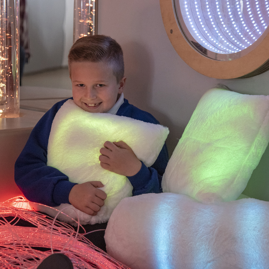 De combinatie van comfort, licht en praktische inzetbaarheid maakt dit lichtgevende kussen tot een waardevolle aanvulling op rustplekken, sensorische speelhoeken en begeleide activiteiten. Het nodigt uit tot ontspanning én visuele exploratie voor kinderen en cliënten die baat hebben bij een calmere omgeving.