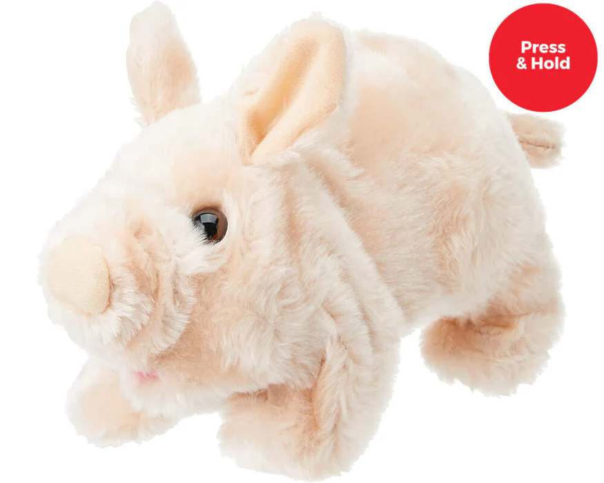 De knuffel is zacht en aaibaar, gemaakt van pluche/tactiele stof — prettig bij aanraking en sensorisch contact. De beweging (lopen, wiebelen), het geluid (oink/snuffel) en de responsiviteit zorgen voor directe feedback bij activatie. Werkt op 2 × AA-batterijen (meegeleverd) en is eenvoudig te gebruiken door de externe switch aan te sluiten. Zo wordt speelgoed toegankelijk — zonder ingewikkelde bediening of fijne motoriek.
