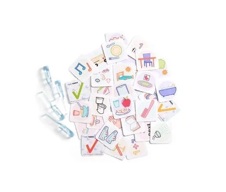 Door de combinatie van de aflopende kleurenschijf en de visuele kaarten leren kinderen (en volwassenen) op een toegankelijke manier omgaan met tijd en verwachtingen. Dit helpt bij het creëren van heldere, gestructureerde dagschema’s, stap-voor-stap taken of routines.