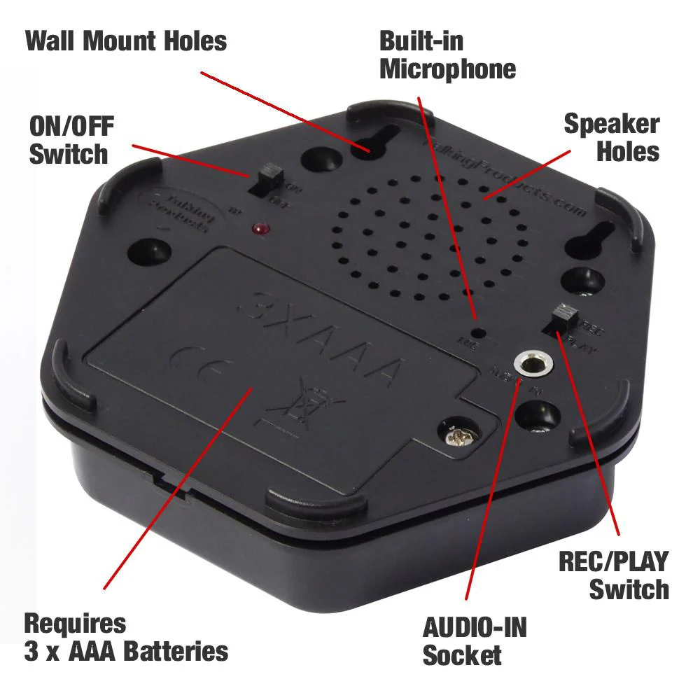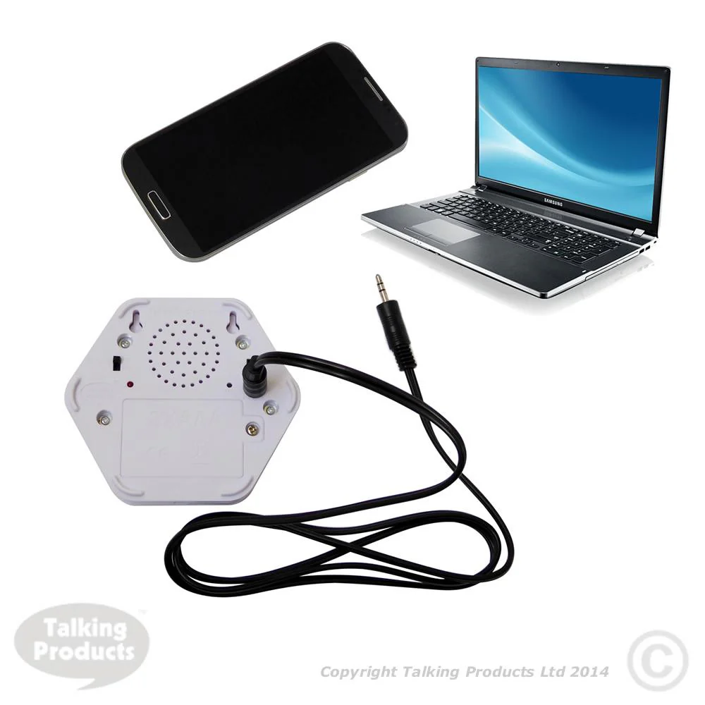 Daarnaast beschikken deze spraakknop over een AUDIO-IN mini-jack aansluting om audio op te nemen vanaf een exerne audio-bron zoals een opgenomen tekst of audiobestand van bijvoorbeeld een mobiele telefoon of computer.
